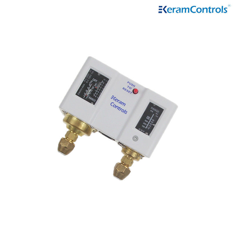Διακόπτης διπλής πίεσης.Οι διπλοί διακόπτες πίεσης πρέπει να χρησιμοποιούνται σε συστήματα ψύξης και κλιματισμού για να παρέχουν προστασία από υπερβολικά χαμηλή πίεση αναρρόφησης ή υπερβολικά υψηλή πίεση εκκένωσης.Τα χειριστήρια χρησιμοποιούνται επίσης για την έναρξη και τη διακοπή ψυκτικών συμπιεστών και ανεμιστήρων σε αερόψυκτους συμπυκνωτές.